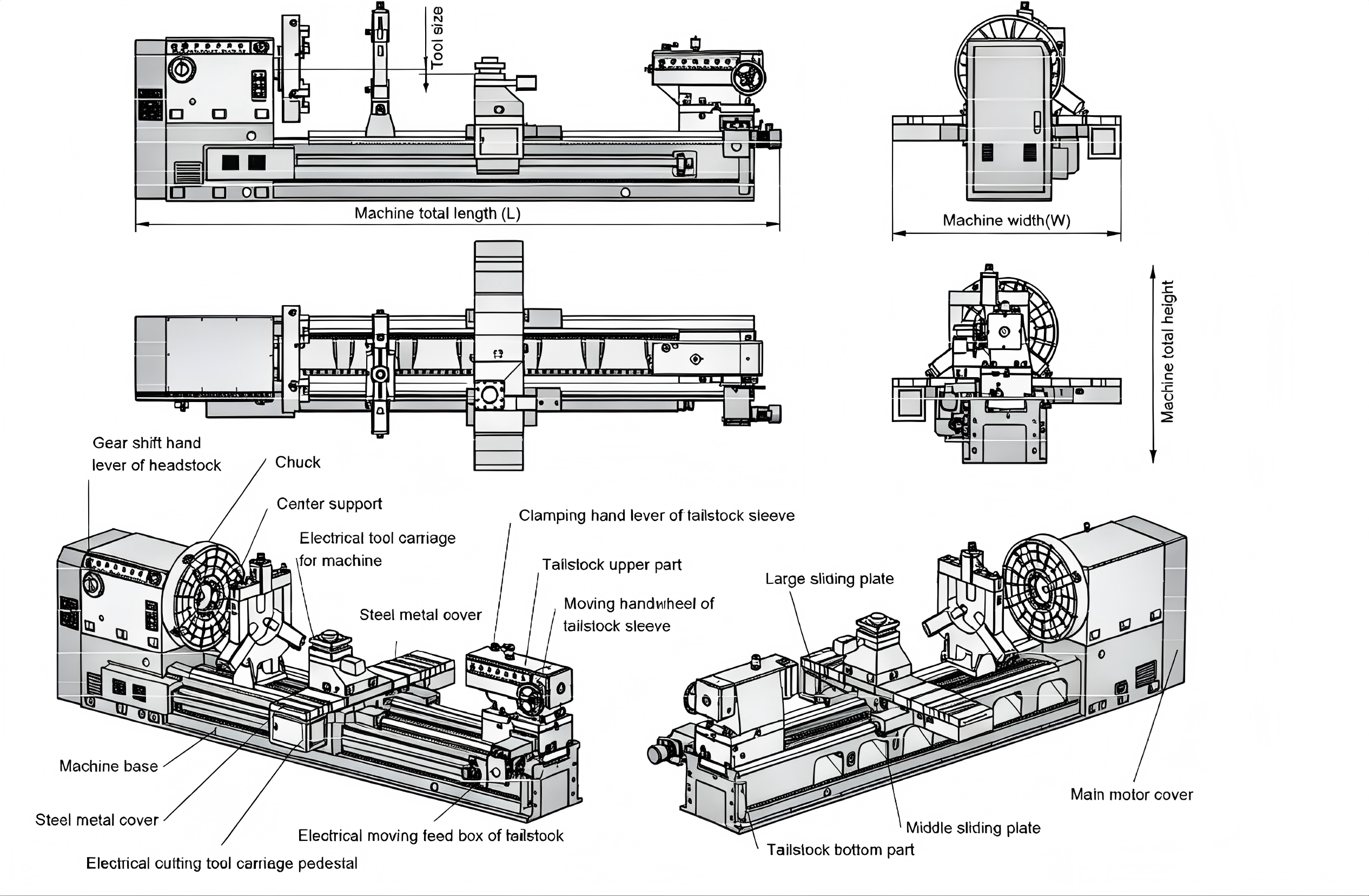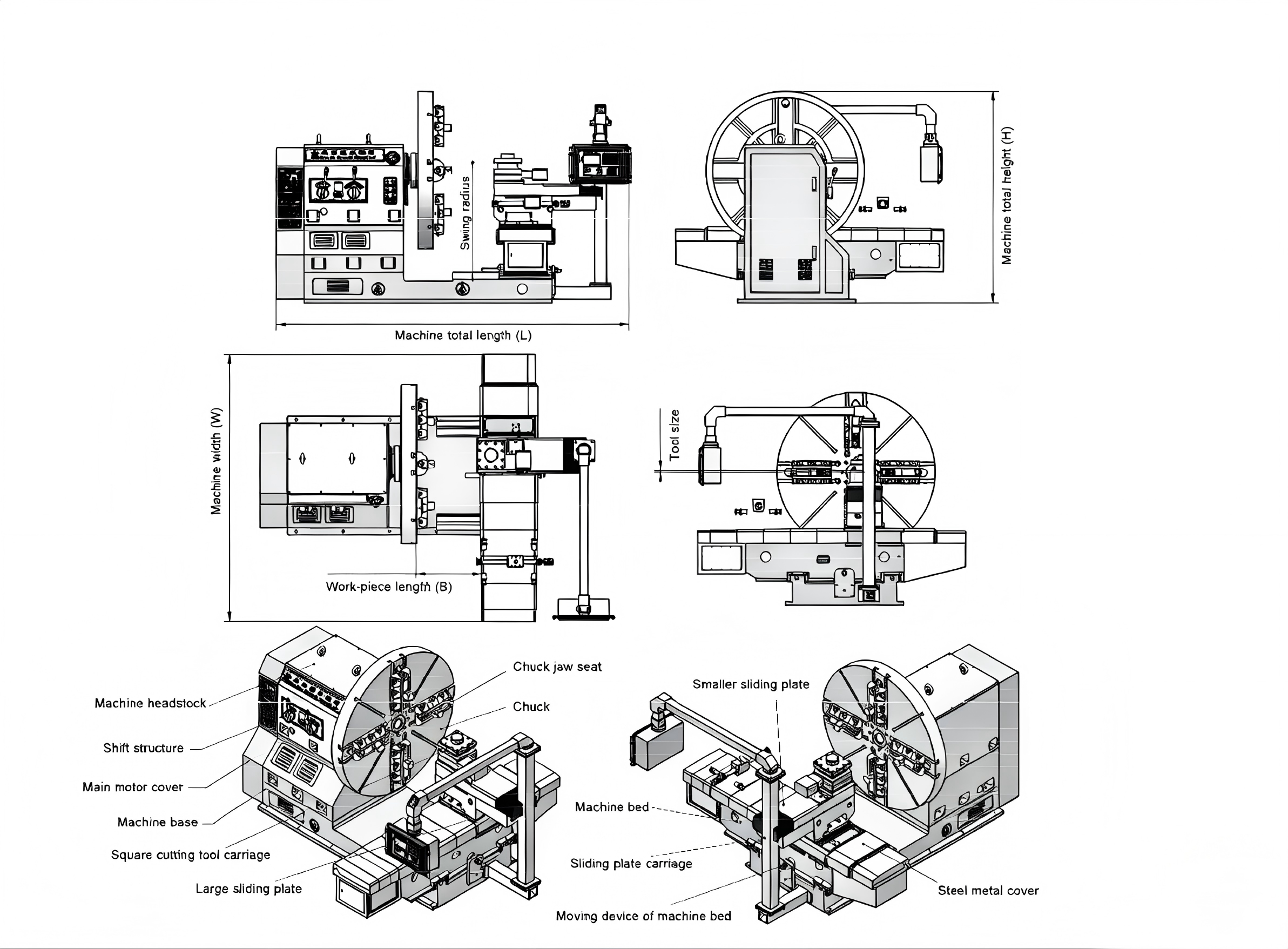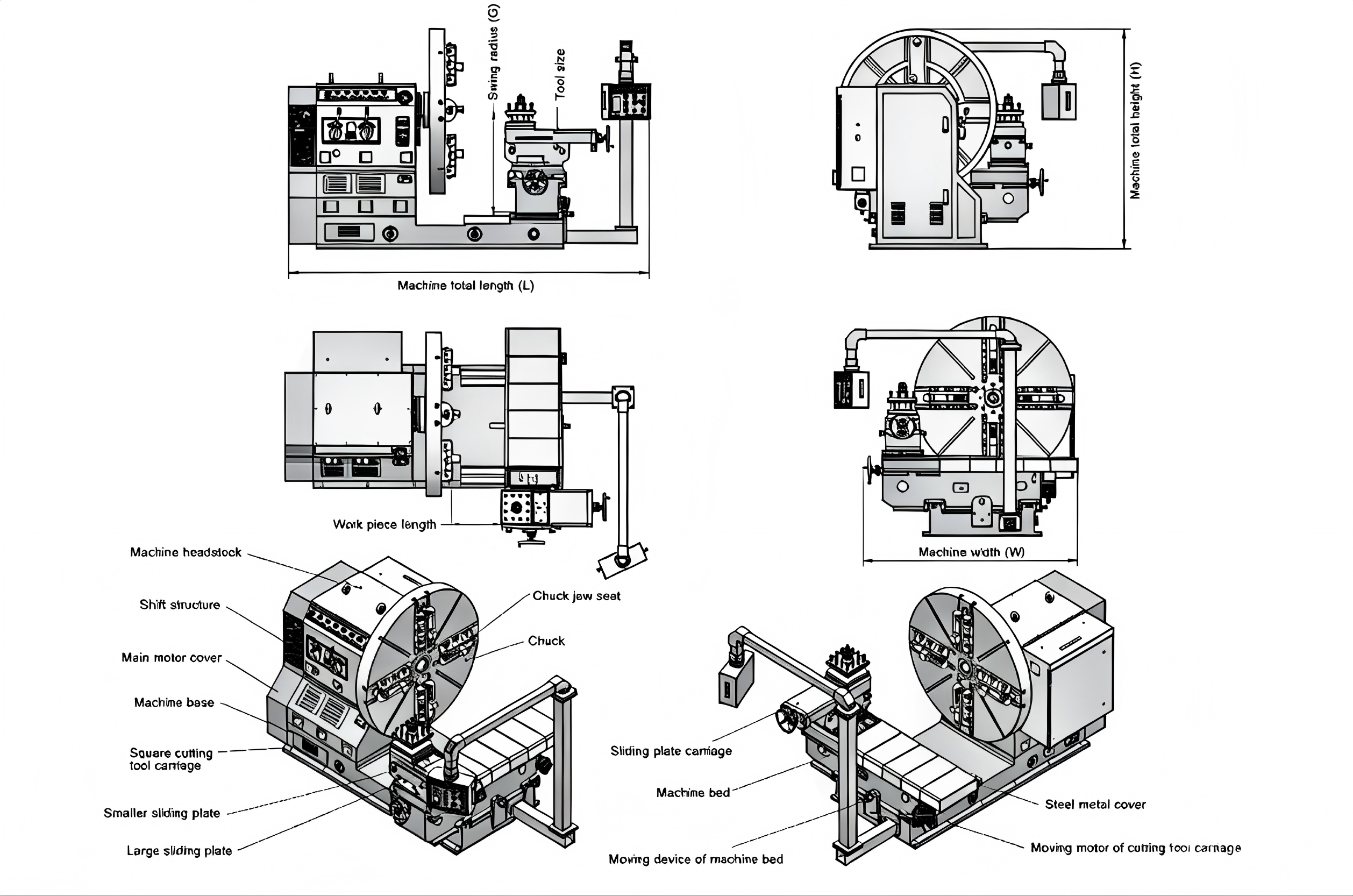 | Swing diameter over machine bed G² | φ1600mm | φ2000mm | φ2500mm | φ3150mm | φ4000mm | φ5000mm |