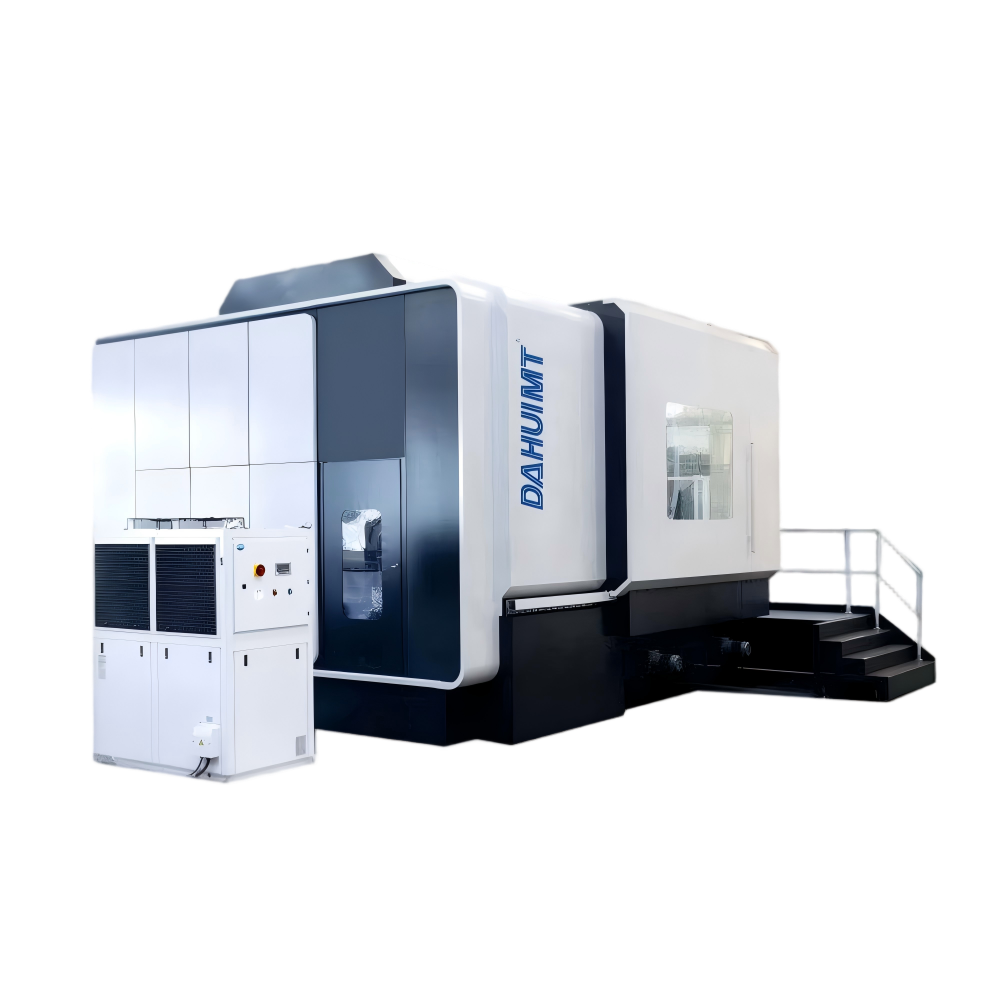 The DHW series’ cutting fluid system delivers precise supply, aiding cooling, chip removal, and tool life extension during heavy-duty 5-axis machining.