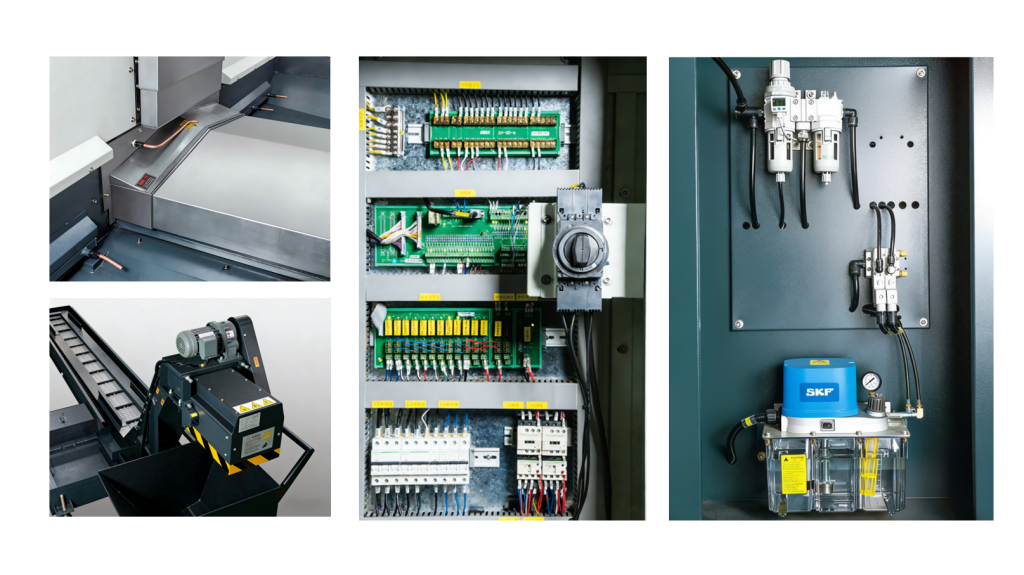 Each DVS model is equipped with a high-efficiency chip conveyor (optional crawler type), matching with chip flushing devices and labyrinth seal protection, promptly handling machining chips and preventing iron chip accumulation to keep production processes smooth.