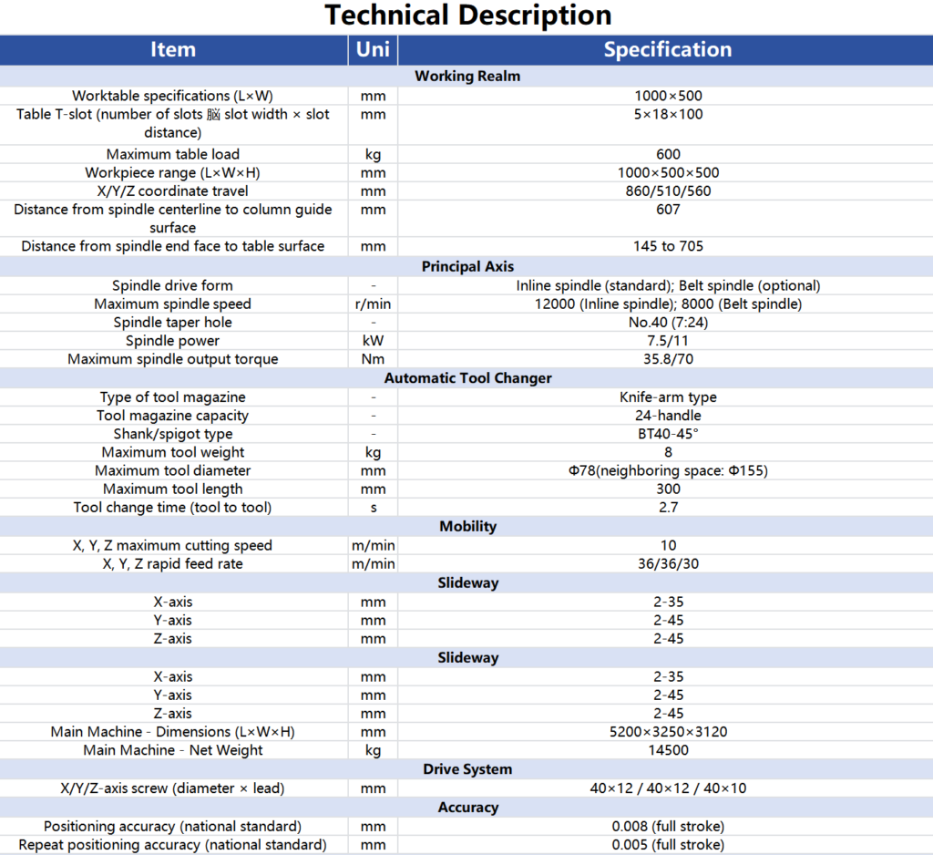 ·Servo motors are directly connected to extra-large, double pre-tension screws (X – φ40 mm, Y – φ40 mm, Z – φ40 mm).